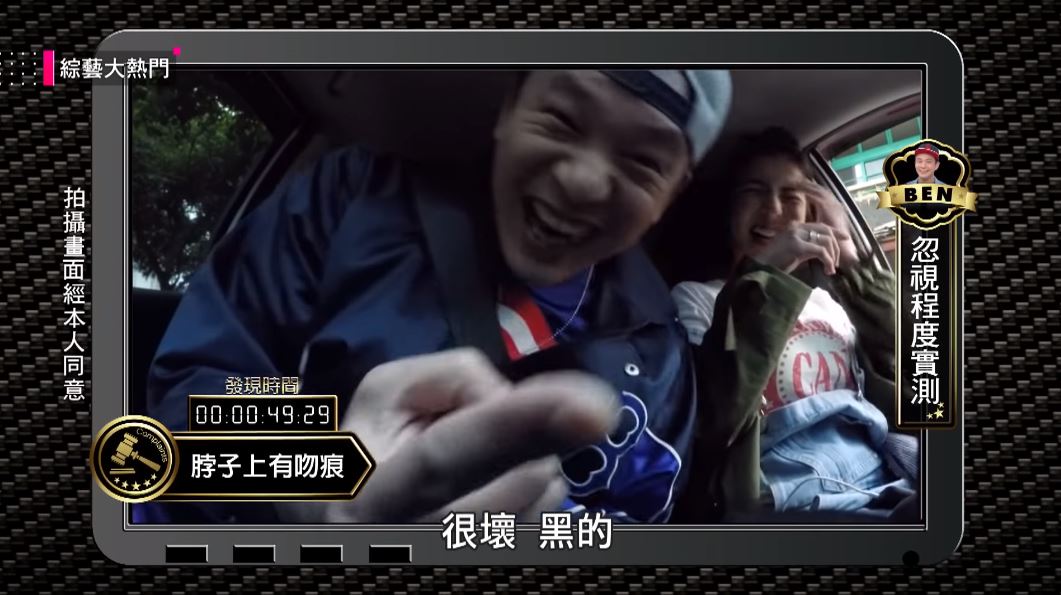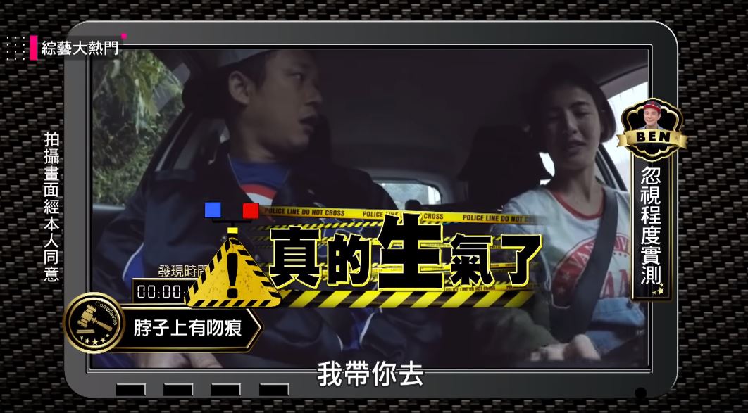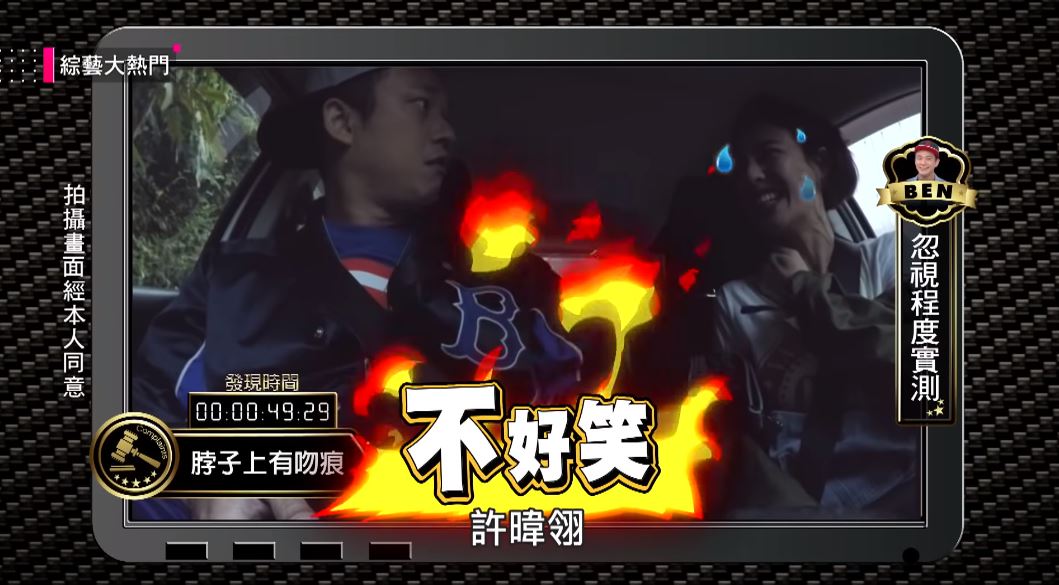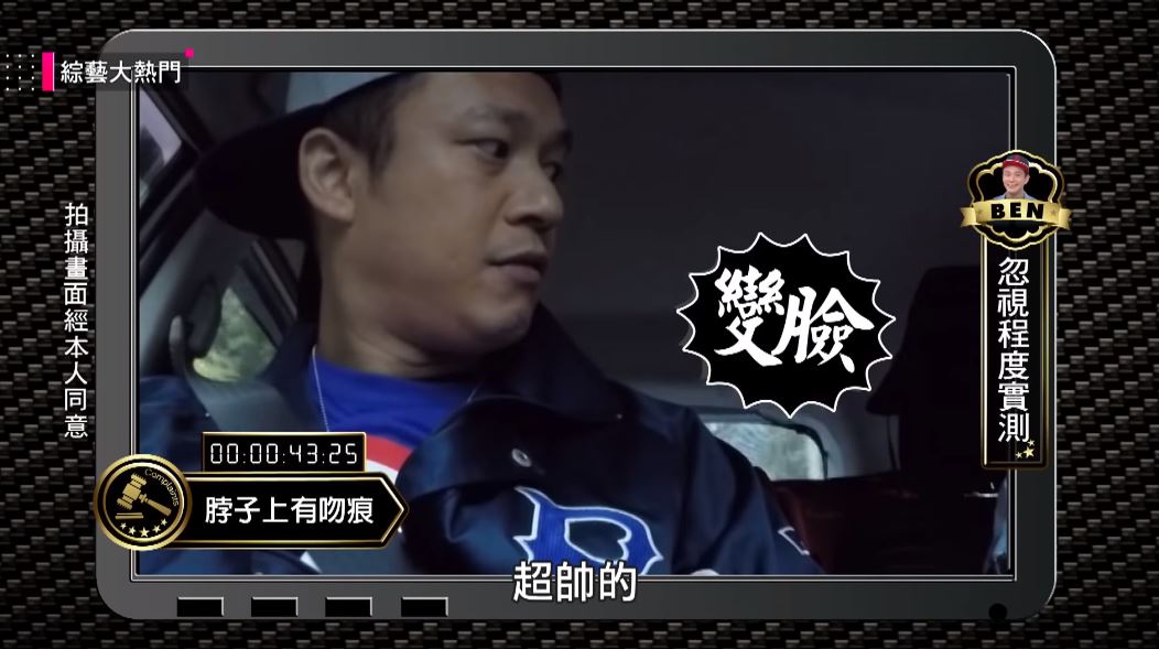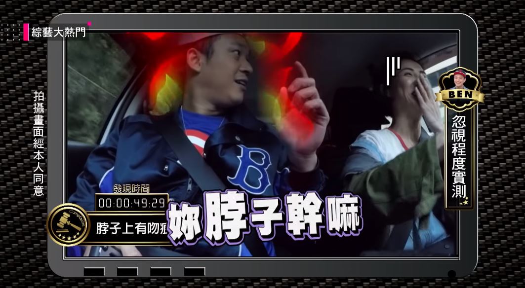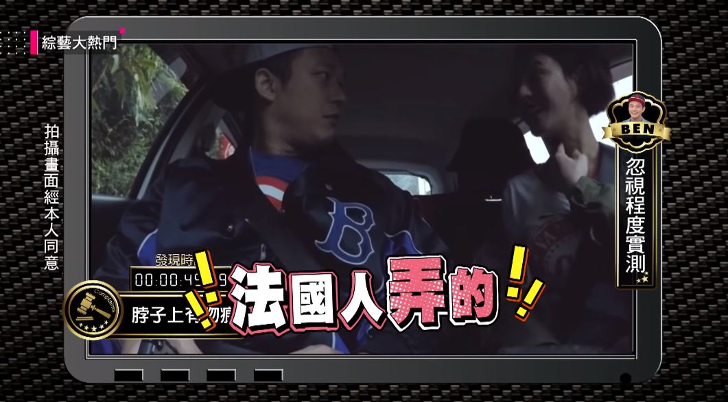 阿Ben一秒被惹怒直問:「你脖子幹嘛!」小可解釋,因為法國人太熱情,打招呼就在她脖子種了草莓,還俏皮的說「法國人弄的~」阿Ben瞬間理智線斷掉,氣得怒飆髒話,節目後製「嗶~」了好長一段,還嚴肅的說:「許暐翎!你在幹嘛啊!」因為小可給的理由實在太難以置信,阿Ben又重複了一次:「你去買東西,然後遇到你朋友?然後你朋友的老公給你種一個草莓?」