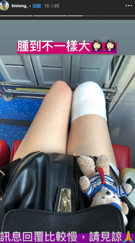 比熊今在IG中分享自己的經驗,更直言:「別拿生命開玩笑」,原來比熊上週膝蓋脫臼,便去蘆洲的診所看診,不過前天因為有事耽擱無法趕回蘆洲,找了另外一間距離比較近的國術館。比熊無奈表示,「沒看沒事,看完出大事」,她解釋自己當時被國術館的師傅喬完骨,「回到家無法站直,腳肌肉萎縮,整夜整隻右腳刺痛到骨盆上,根本痛到無法入眠」,看完狀況反而越來越糟。