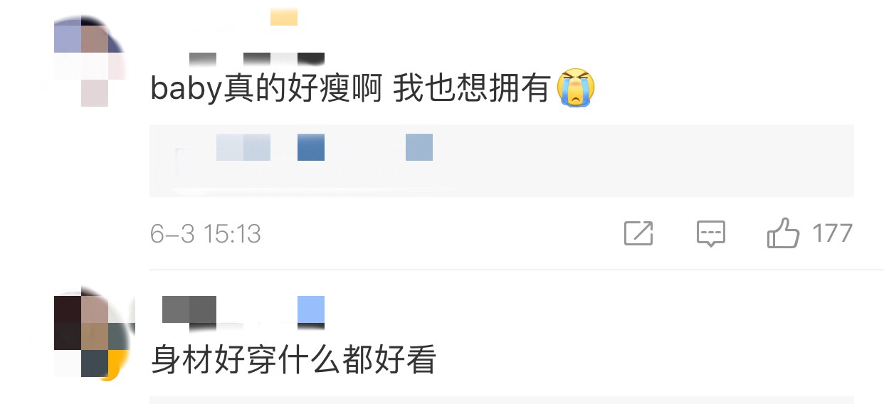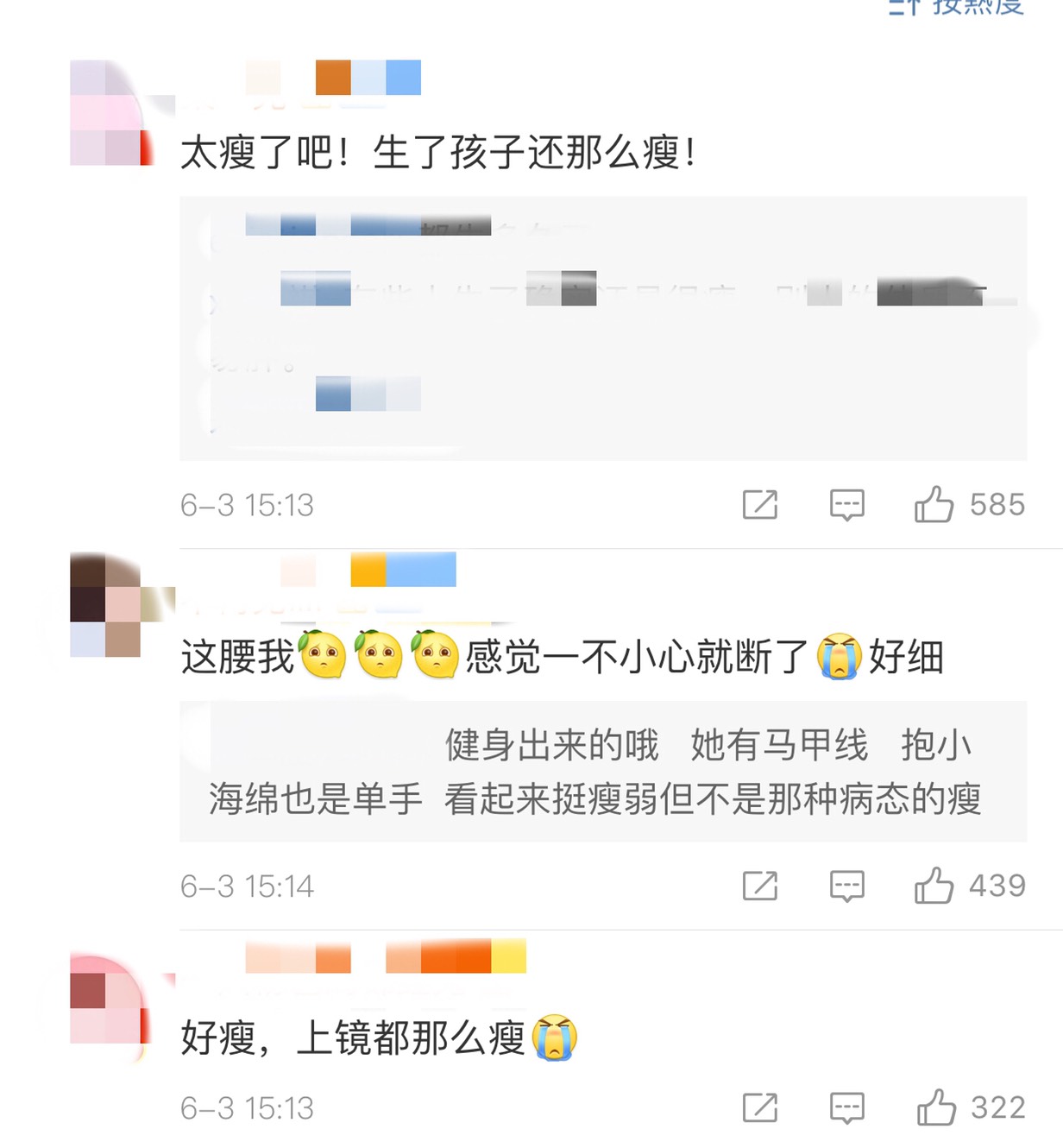 從照片可以看出Baby雖然戴帽子和口罩,依舊掩飾不了出眾氣質,身材骨感,看不出一絲贅肉的手臂,還有非常纖細的腰身,引起網友熱烈討論,「太瘦了吧!生了孩子還那麼瘦!」、「這腰我感覺一不小心就斷了」、「baby真的好瘦啊!我也想擁有」、「我真不敢想像她現實到底有多瘦!!」、「我要殺了剛吃了零食的自己」。發現被拍後,Baby也大方熱情打招呼,親和力十足。