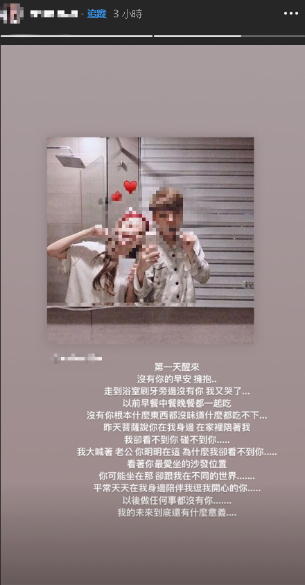 網紅女友無助表示:「我不知道怎麼面對這個沒有你的家....我真的無法接受這事實......拜託告訴我這是一場夢」,思念之情讓人鼻酸。今早她也發文:「以後做任何事都沒有你,我的未來到底還有什麼意義」,而其他好友、粉絲也紛紛留言替他加油打氣,盼事情趕快水落石出。