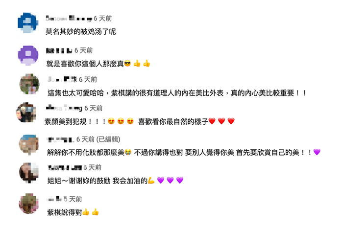 看見鄧紫棋如此中肯的分析後,粉絲們紛紛留言大讚:「喜歡看你最自然的樣子」、「紫棋講的很有道理人的內在美比外表,真的內心美比較重要!」、「紫棋說得對」、「就是喜歡你這個人那麼真」,大家對於鄧紫棋的「自信美言論」相當贊同。