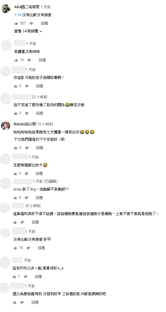 網友見狀後,也紛紛留言:「你這影片晃的老子我頭好暈啊!」、「這影片看完 我可以很肯定 艾瑞絲 不是靠身材 走跳」、「想不到說啥 還是老話一句 優秀」、「會不會這影片一出...所有訂閱都跑到那些來賓那邊了!!」、「其實胸部沒有很大沒差身材不錯也很好看」、「怎麼每個都比妳大」,培根也留言:「沒有比較沒有傷害」。