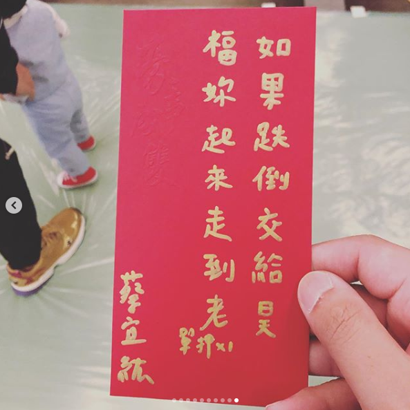 蔡哥公布了許多婚禮現場的照片,也難得可以看到HowHow和阿福兩人的同框照,其中一張照片中兩人還戴上了求婚當天的迪士尼頭飾,相當可愛,蔡哥也曬出自己寫的紅包袋:「如果跌倒交給昊,福妳起來走到老」,用兩人的名字組成對句,相當用心。