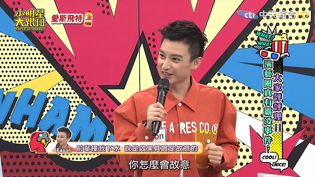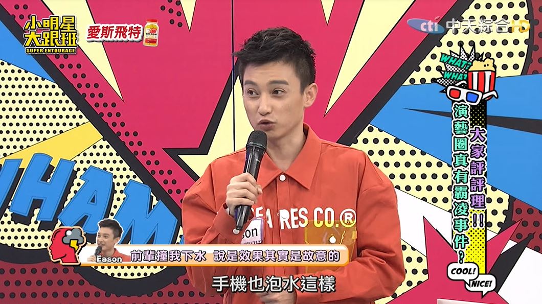 Eason(黃尹宣)過去曾是CIRCUS的團員,因為敢玩、搞笑的個性深受粉絲喜愛,近日他在《小明星大跟班》分享進入演藝圈後被霸凌的辛酸往事。Eason透露,他曾在外景節目被前輩故意推下水,對方硬拗是做效果,卻導致他手機泡水自掏腰包付維修費。不過聽在吳宗憲和小鐘耳裡,這些根本不算什麼,甚至直說:「難怪你追不過KID!」讓他當場表情超尷尬。