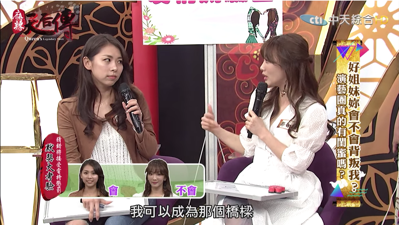 7日播出的《麻辣天后傳》「好姐妹妳會不會背叛我」單元,找來多組藝人探討「演藝圈真的有閨密嗎?」其中玉兔就談起她和米奇成為閨密的契機,表示是因為《黑澀會》時期兩人經常一起練舞、找服裝,逐漸成為無話不談的朋友。她表示,即便前陣子米奇出國工作許久未聯絡,但她一回國、兩人一碰面,「還是可以講很多心事」。
