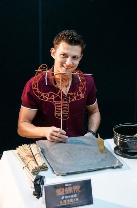 隨著《蜘蛛人:離家日》即將在全球上映,導演強華茲(Jon Watts)也率領演員「蜘蛛人」湯姆霍蘭德(Tom Holland)和「神秘客」傑克葛倫霍(Jake Gyllenhaal)一同展開全球巡迴宣傳,11日則抵達中國北京站。雖然湯姆霍蘭德已經不是第一次為電影到訪中國,不過現場仍首度體驗不少當地傳統文化,包括包餃子、學習製作糖畫,其中導演也以糖畫作出蜘蛛人的面具,而湯姆霍蘭德試圖畫出蜘蛛人,卻在一陣混亂中被笑稱「什麼時候多了熔岩人」。