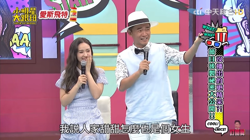 吳宗憲也替小甜甜抱不平,直說「人家甜甜怎麼也是個女生,然後打了一個象拔蚌,現在是有病喔!」小優則表示,因為小甜甜平常喜歡穿極短褲,不過後製能找到「象拔蚌」也是不容易。