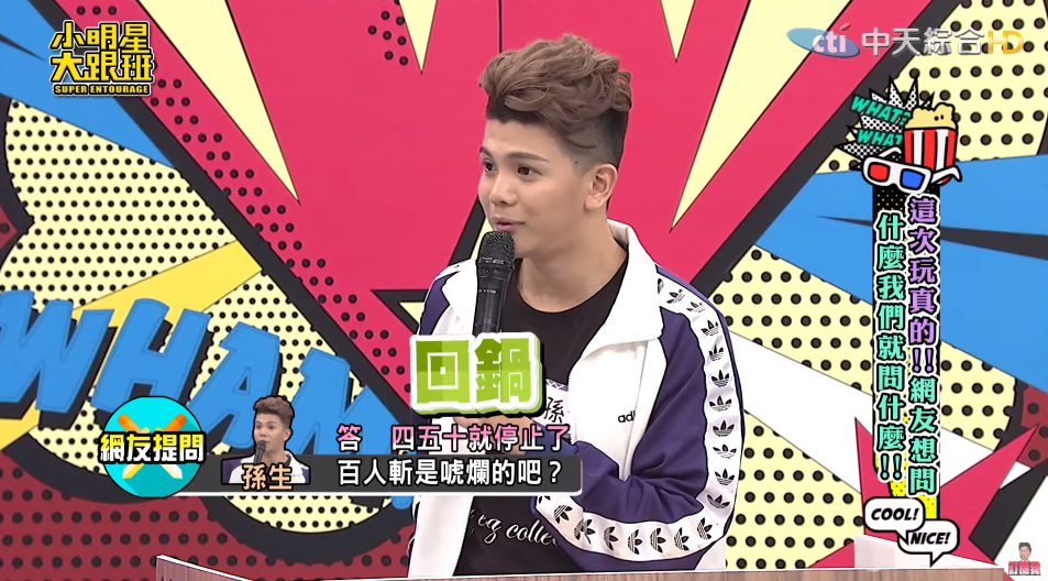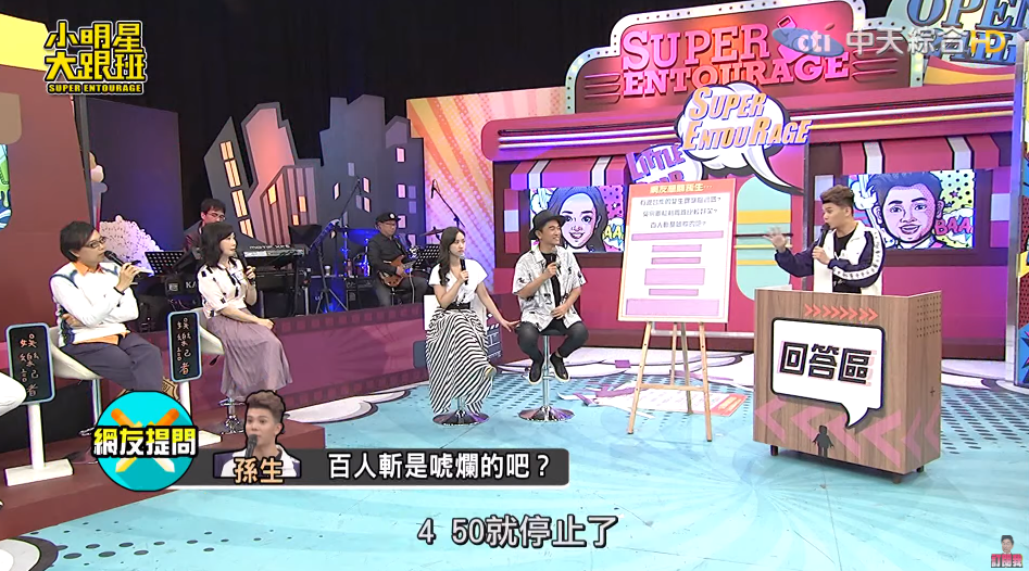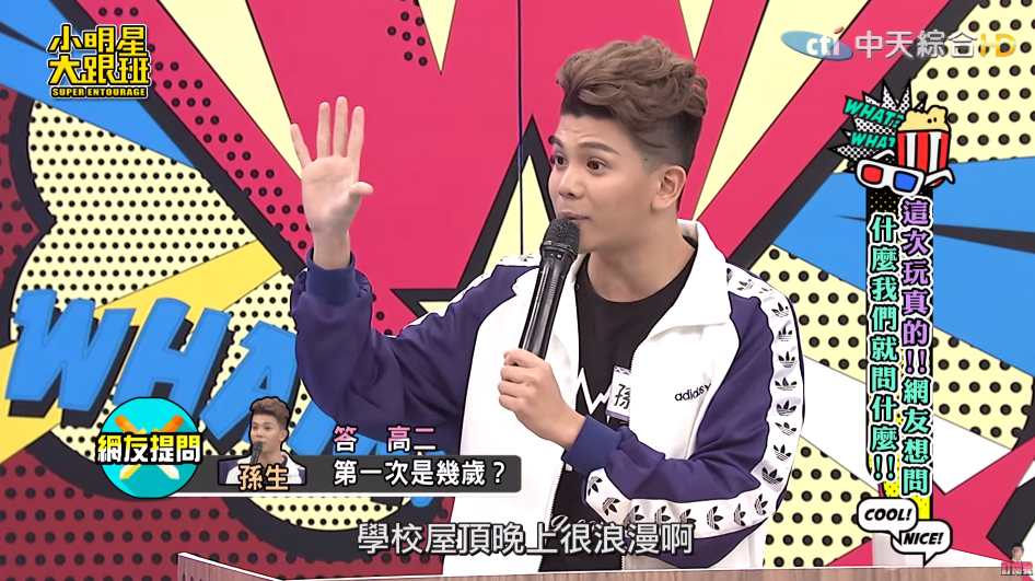 吳宗憲也調侃他要達到百人就要回鍋,讓孫生聽了也露出尷尬的笑容。除此之外,這次孫生也提到自己的第一次是在高二的時候,和學姊在學校屋頂,讓主持人Sandy、憲哥直呼:「好誠實,他真的知無不言,還不錯」。