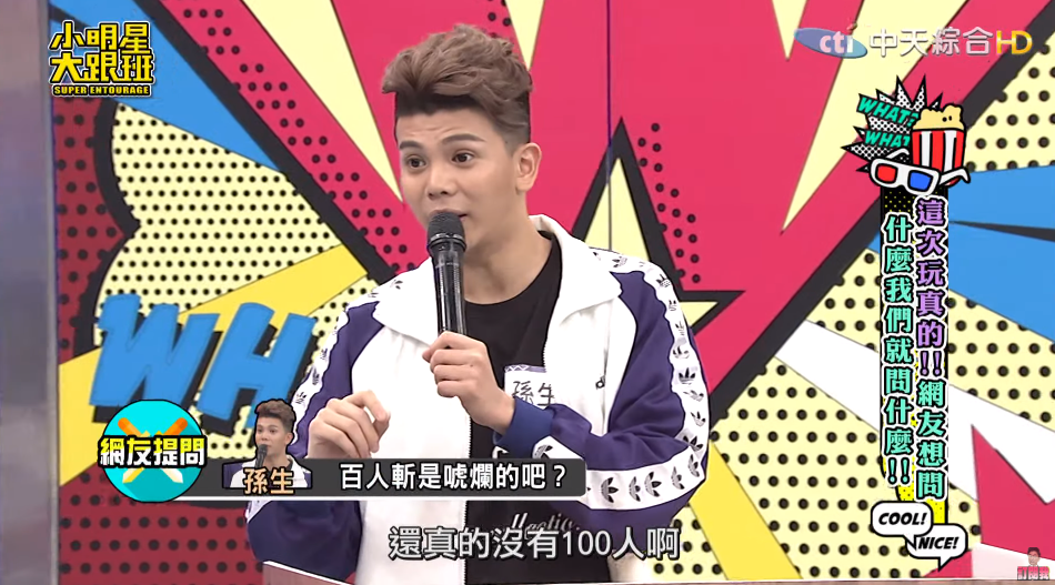 近日孫生登上綜藝節目《小明星大跟班》,節目整理了許多網友想要問他的問題,而他也毫不閃躲全部據實回答!而第一題「有跟合作的女生嘿咻臉過嗎?」,孫生便強調自己「真的沒有」,後來主持人問道:「百人斬是唬爛的吧?!」,孫生也回應其實真的沒有到百人,「4、50人就停止了」。