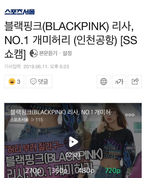 韓國女團BLACKPINK近期除以新專輯《Kill This Love》回歸外,也緊接著展開第二次的世界巡迴演唱會「In Your Area」,目前已經進入倒數階段,即將前往澳洲演出,而11日,BLACKPINK現身韓國機場時,就被捕捉到身穿短版上衣的Lisa,本來就很纖細的螞蟻腰,竟然受到跟旁邊Jennie手拿包的寬度一樣,再度成為韓網報導焦點,甚至被稱是「第一螞蟻腰」。