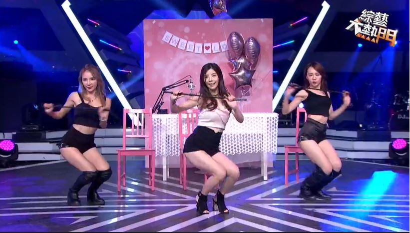 小咪穿著緞面的睡袍現身,披著一頭浪漫的長捲髮,再配上黑色的高跟鞋,畫面引人遐想。小咪性感熱舞,原本就很短的睡袍被越撩越高,時不時還會露出裡面的超短熱褲,小咪往地上一趴,渾圓的屁股蛋全被看光。跳到一半,音樂突然改變節奏,小咪就當著鏡頭把睡袍給脫了!裡面只有一件超低胸的平口小可愛搭配熱褲,讓網友們瞬間暴動,吳宗憲在一旁也忍不住喊:「欸欸欸!拚了!」