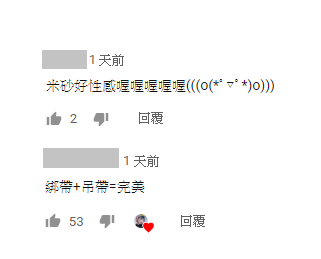 影片最後,「米砂」也不敢改其「老濕姬」的特性,大聲地宣告「我是黑色的綁帶內褲,怎麼樣啊」,同時還露出側腰的綁帶拉了拉,更讓網友直呼「米砂好性感喔」「綁帶+吊帶=完美」。