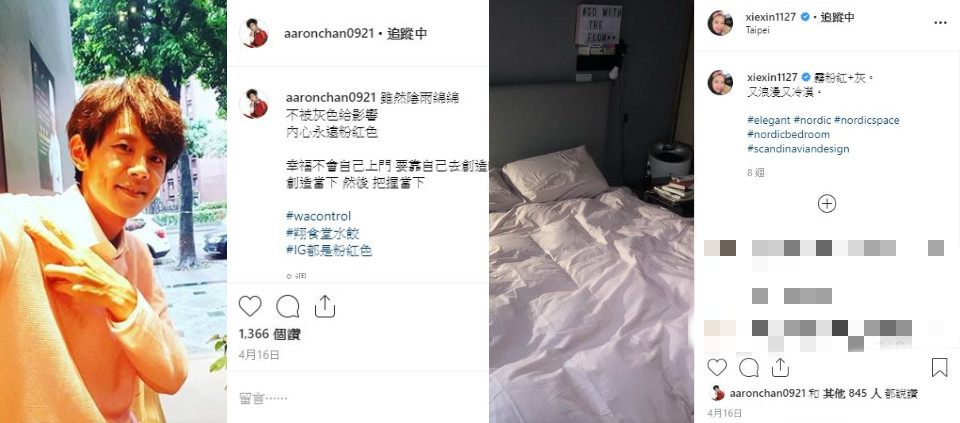 一直以「兄弟」相稱的阿翔和謝忻,昨(12)日竟然被爆出婚外不倫戀,還被拍到兩人當街激吻的畫面,投下一顆震撼彈,讓外界相當震驚。對此,不少網友都當起柯南,調查兩人究竟是甚麼時候開始的,果然也被挖出兩人不少隔空對話的貼文,當時看起來沒甚麼的貼文,一比對之下才發現,兩人真的是愛得很高調!
