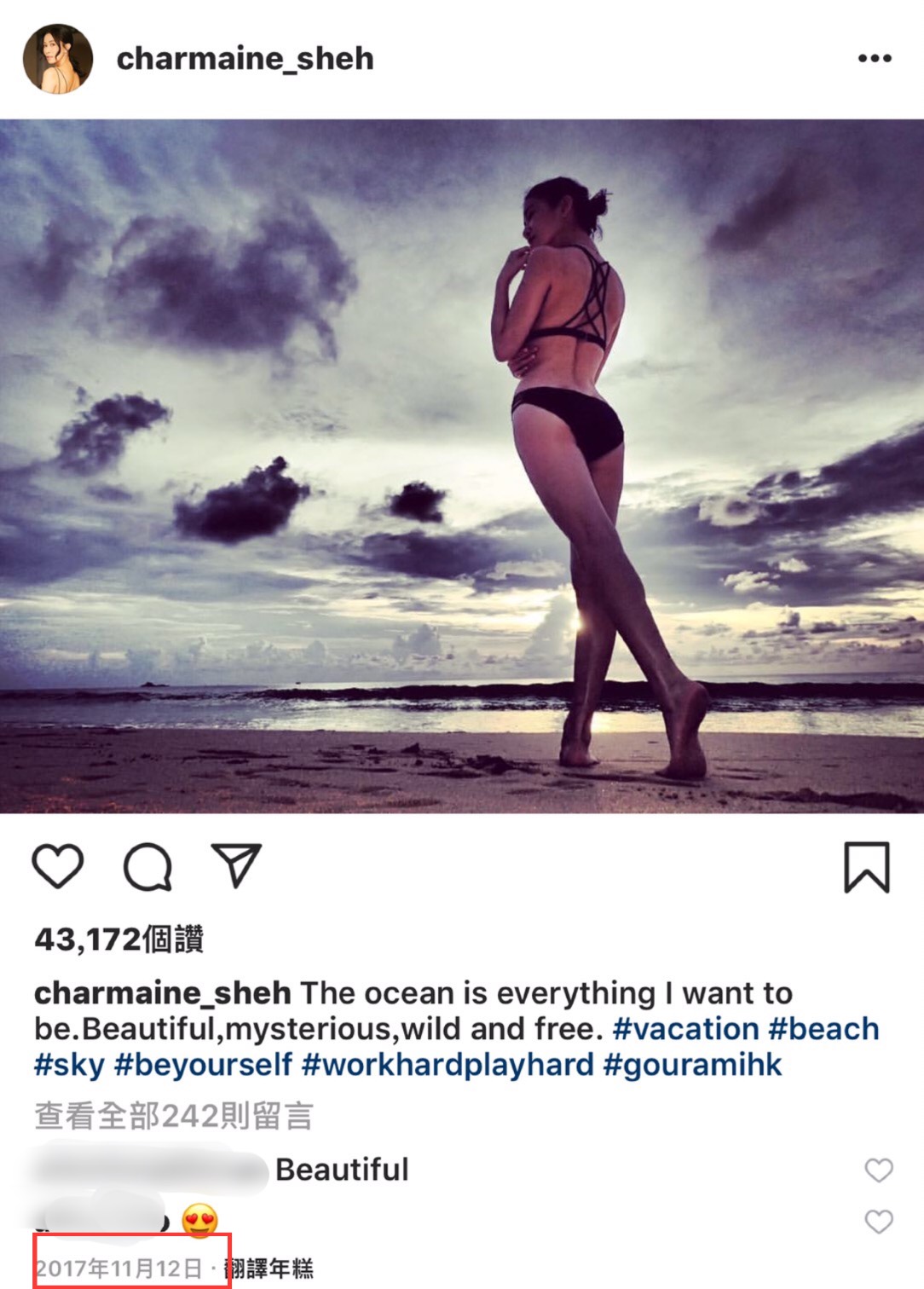 在11日出席活動時,接受香港媒體《東網on.cc》採訪,雖然時隔15年再度以泳裝示人,自己其實不太會抗拒這樣性感的打扮,而是強調只要是健康美都是能接受的。距離上次在IG發泳裝照,已是2017年,時隔兩年再度PO出還是讓大批粉絲為之瘋狂,紛紛留言:「皮膚怎麼那麼嫩」、「真的好美皮膚真的好好」、「太性感了」。