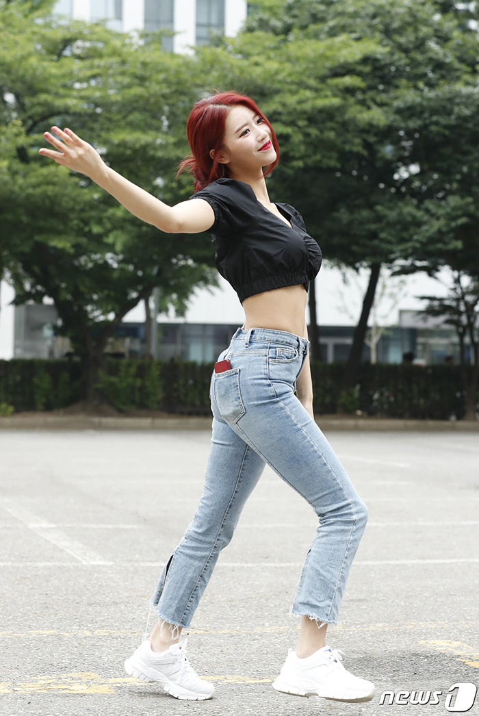 事實上,始終擁有「上班路妖精」的美珠,14日,Lovelyz準備前往KBS電視台錄製《音樂銀行》前,美珠穿著黑色短版上衣現身,露出一大截螞蟻細腰,前凸後翹的姣好身材讓他再度成為韓網熱榜。