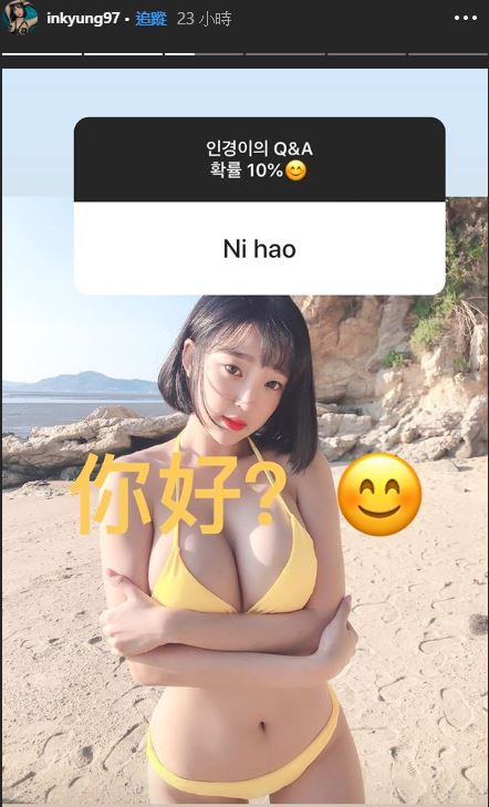 大打清純牌的姜仁卿即便拍攝學生制服照,甚至沒有過度裸露,舉手投足都散發著性感氣質。像是穿著制服短裙搭配及膝襪,露出一截雪白的絕對領域,或是刻意泡在水中營造出若隱若現的氛圍,就連日常包裹緊實的穿搭都難掩他姣好的身材,讓姜仁卿在國內外擁有大批粉絲追蹤,今(14)日,透過IG限時動態和粉絲互動時,更以中文「你好」並搭配微笑圖樣打招呼,展現他親民的一面。