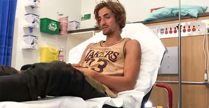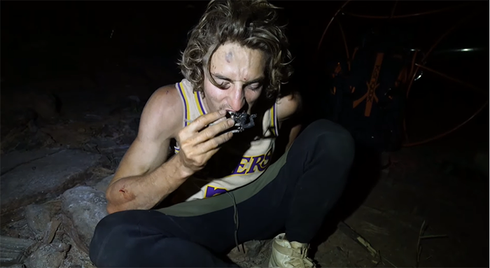 到了晚上,鋼蛋則打起精神決定要去找食物,沒想到之後也真的碰到了一隻「青蛙」,抓到後更直接烤來吃,直說:「可能對你們來說看起來很噁心,但是對我來說看起來太美味了,好好吃」。不過事實上鋼蛋所抓的疑似不是青蛙,而是劇毒的「海蟾蜍」,雖然影片裡沒有播出他吃下蟾蜍後的狀況,不過他們也在影片首圖放上鋼蛋在病床上的照片,令粉絲十分心疼。