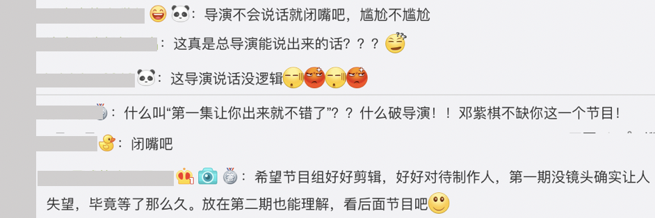 過去節目組就曾被網友們警告不要再惡意剪輯,然而這此總導演車澈回應鄧紫棋鏡頭很少的事,更引發網友更加不滿,紛紛留言表示:「導演不會說話就閉嘴吧,尷尬不尷尬」,相當不滿。