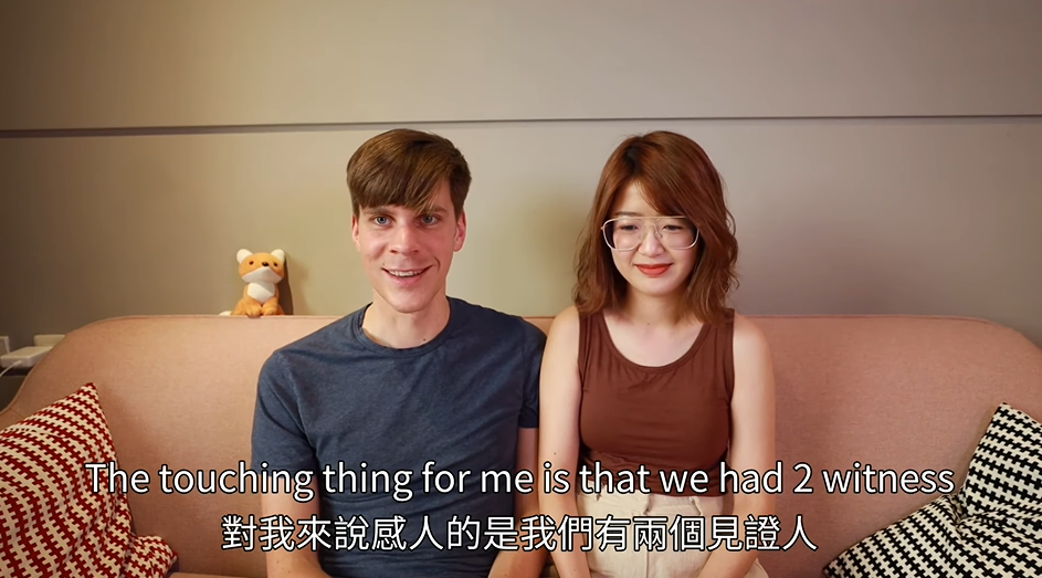Jonas後來提到因為瑞典人的身份,所以兩人的結婚有很多繁瑣的手續要處理,不過他還是覺得非常感人。原來他們這次登記結婚有兩位見證人,一位是查理的好友,另一位就是查理的阿嬤,能夠被查理的阿嬤接受,讓Jonas感性表示:「我很開心,我覺得我被接受了,我沒想到她是幫我們見證的人,我們甚至沒和對方說過話」。