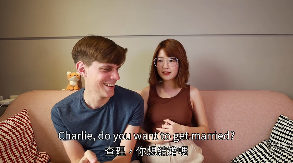 Jonas表示本來想告訴周圍的朋友就好,不過後來又決定還是透過影片告訴大家!查理也說明其實Jonas大約四年前就已經求婚,當時查理搬到Jonas在瑞典的公寓,而Jonas就在某天洗好澡的時候,突然對查理說:「查理,你想結婚嗎?」,不過查理則非常理性地表示:「結婚的用處是什麼?」,讓當時戲劇化的Jonas崩潰:「你不想跟我結婚,為什麼?」,現在重新回憶此事,Jonas也自嘲:「我就是感傷又戲劇化的youtuber,因為那個時刻我就想要這樣做」。