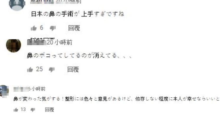 日本女星三上悠亞,16歲以藝名「鬼頭桃菜」隨著偶像團體SKE48出道,2015年才改為現在的名稱轉戰成人影業,卻常被外界比對舊照質疑整容,16日,三上悠亞時隔7個月更新個人YT頻道拍攝開箱影片,卻被外界指出鼻子有很大的差別,疑似進場修臉,並紛紛表示「削鼻骨了吧」、「日本的鼻子整容技術超高」、「鼻子有變的感覺」,更有人拿他和另一知名女優明日花綺羅的外觀相比表示如果削骨肯定會比明日花好看。