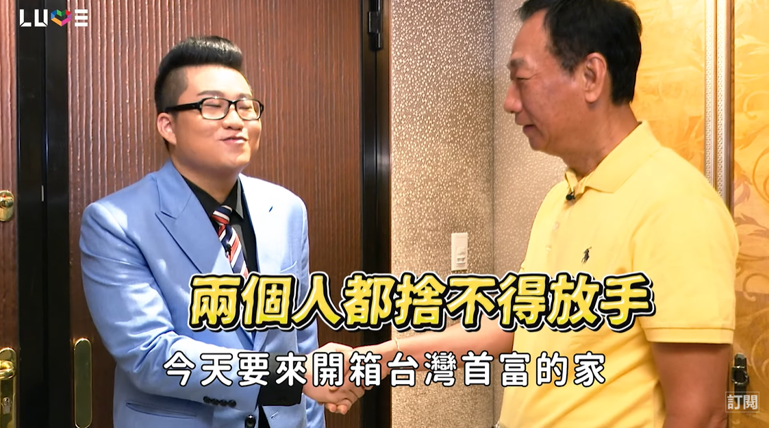 「郭台銘」三個字應該是在台灣無人不知,無人不曉的名字,作為鴻海集團的董事長、台灣首富,以及當前的國民黨初選候選人,近期郭台銘的新聞更是不勝枚舉,但是卻不曾有人在螢光幕前曝光郭董的家宅,而「Joeman」竟採訪到了,一見到郭董,兩人便開心地握手,還遲遲不肯放手。