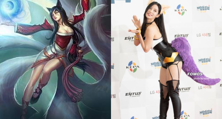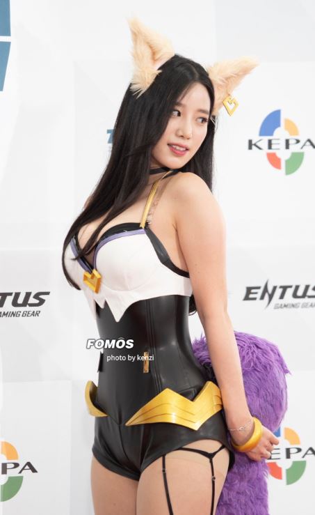 16日在首爾的電子競技場(eStadium ),由遊戲頻道OGN舉辦的競賽「Game Dolympic」,現場聚集不少藝人,其中女團Berry Good成員祚弦也現身紅毯,當天更Cos《英雄聯盟》的人氣角色「九尾妖狐阿璃」。照片中,祚弦的服裝又比經典款的「阿璃」裸露不少,除了複製角色雄偉的上圍外,更大膽露出東西半球,此外也拿掉了「阿璃」身上原有的袖套和裙擺,下半身穿著吊帶絲襪,更加凸顯祚弦以肉感聞名的性感身材。