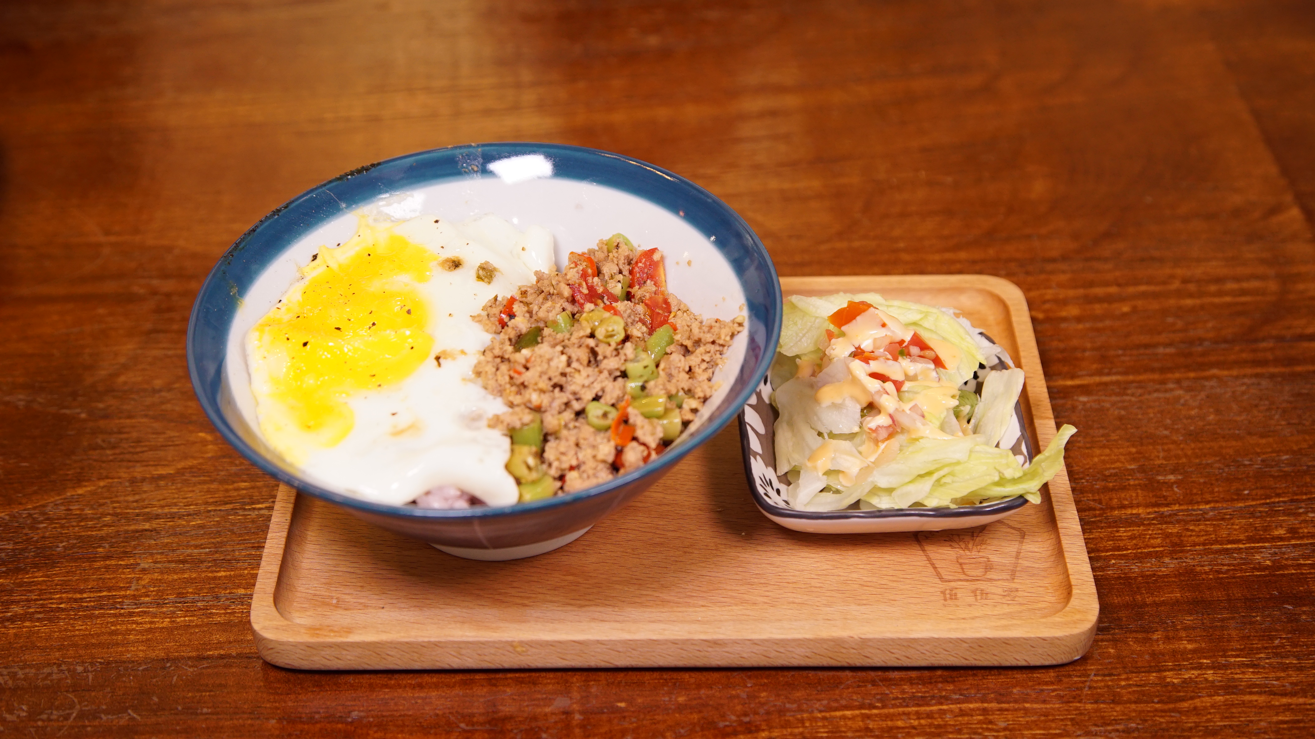 伍伍零的餐點,除了有鬆餅與飲品,還有提供正餐喔!! 我們當天點了打拋豬與紅酒燉牛腩,都非常好吃!