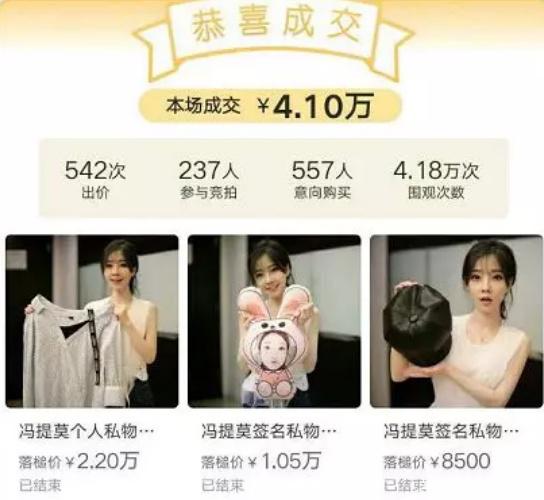 近期馮提莫參加大陸阿里拍賣平台的公益拍賣,而馮提莫拿出的這三件物品分別是她穿過的長袖衣服、戴過的簽名帽子,以及平時使用的抱枕,這三樣物品都能稱得上是馮提莫相當私人的物品,其中這一場拍賣一共有237人共同參與競爭,起標價格為1塊錢人民幣,最終得標的價格分別為是衣服2.2萬元(約台幣10萬)、帽子8500元(約台幣3.8萬)以及抱枕是1.05萬元(約台幣4.7萬),翻了97倍相當驚人,然而拍賣所有所得馮提莫都捐贈做公益。