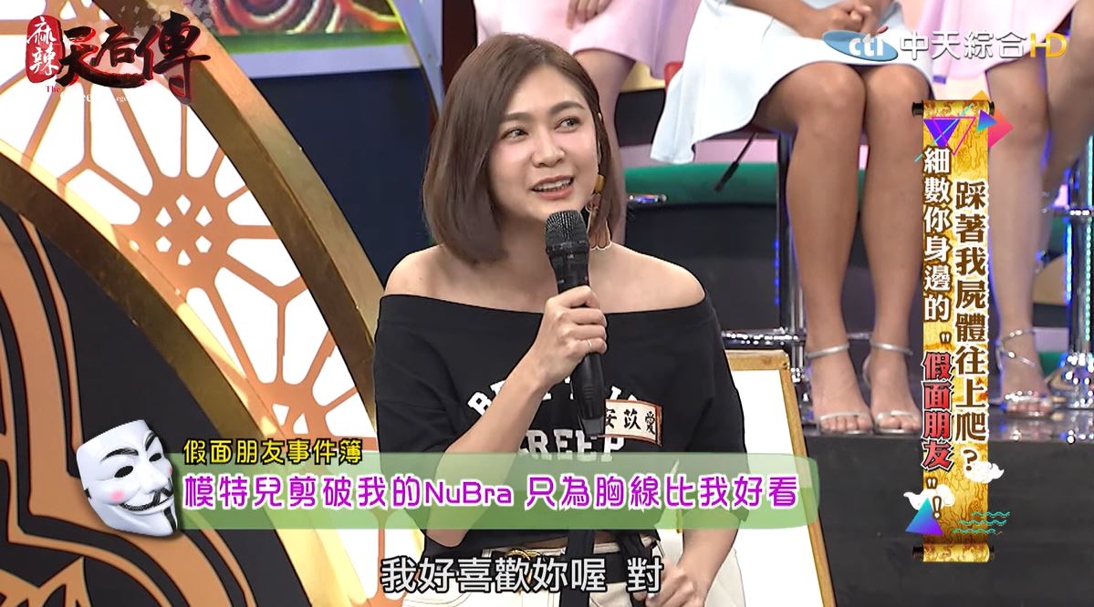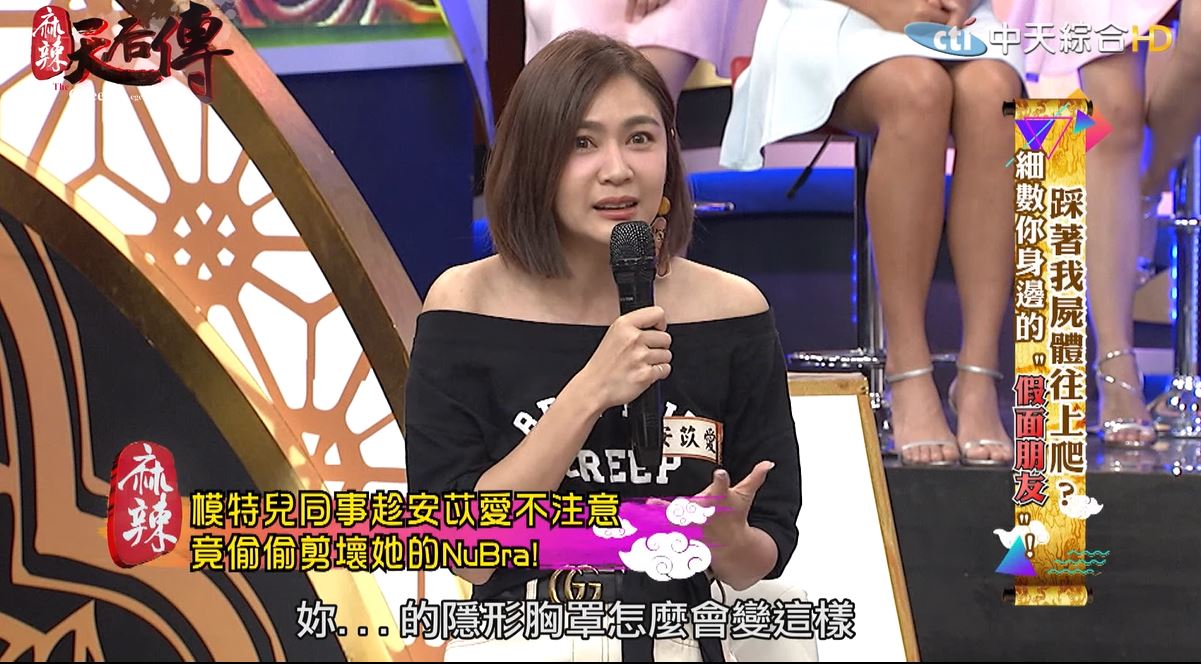當時她沒有多想,把NuBra忘在桌上就進去換衣服,「結果我走出去的時候,哇!我的NuBra全都分開了!變成一塊一塊的。」安苡愛超傻眼,但當時大家都去換衣服,也不知道到底是誰做的。剛剛主動跟她聊天的女生,第一個衝出來大喊「Oh my God!妳的NuBra怎麼會變這樣!是誰怎麼會這麼壞!」
