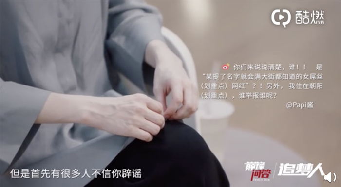 大陸網路紅人「Papi醬」本名「姜逸磊」,從2015年就開始和朋友一起經營微博帳號並發表一些原創的短影片,以浮誇的表演以及毒舌的風格獲得網友的喜愛,接著Papi醬開始嘗試更多元的風格,在2016年2月時,Papi醬憑藉變音器發佈原創短視頻內容而為人熟知,4個月後就獲得超級紅人節「微博十大視頻紅人獎」,如今Papi醬更被稱為是「網紅第一人」,微博上擁有3071萬粉絲追蹤。近日,Papi也首度在節目上回應過去被爆出關於賣身的黑料。