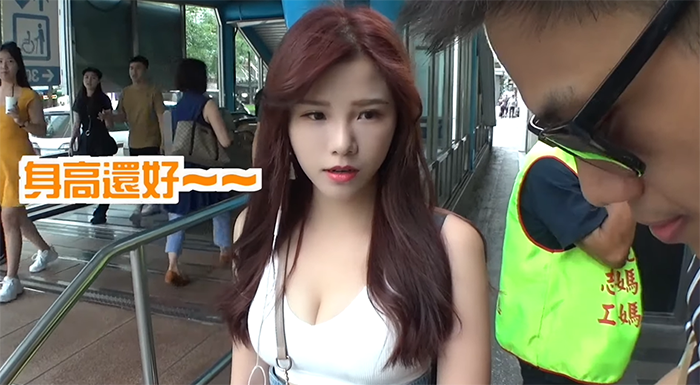 18日黑男上傳最新影片「性感女孩的激速配對」,影片中他在街頭找到一位超胸直播主「Penny」來配對,而Penny起初還拒絕他,表示自己趕著要去代言,後來在黑男的說服之下才答應,更表示自己喜歡乾淨、成熟、穩重的男生。身高153的她,雖然身形十分矮小,不過卻有著超級姣好的身材,白色細肩帶完全凸顯出雙峰,尤其事業線更是十分吸睛。