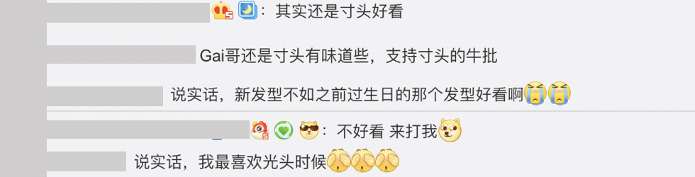 而網友看見GAI嘗試新髮型後,也紛紛留言:「新髮型好看的年輕有活力!」、「想蹂躪GAI哥的頭髮」、「比圓寸顯的年輕精神」、「也太帥了吧GAI爺!!!」、「盛世美延呀」,但也有部分的網友認為以前GAI寸頭的造型比較霸氣。然而在6月20號時,GAI也宣佈即將舉辦《蓋·世》巡迴演唱會,首場將在上海舉辦,GAI更感性的寫下:「第一次全程參與,每一個細節都讓我興奮,這一次我想把一切最精緻的呈現!從我走上這條路,我就只在這條路,從我一個人,到現在有家有你們,感謝音樂!」,演唱會的消息一出,粉絲們都相當興奮激動。