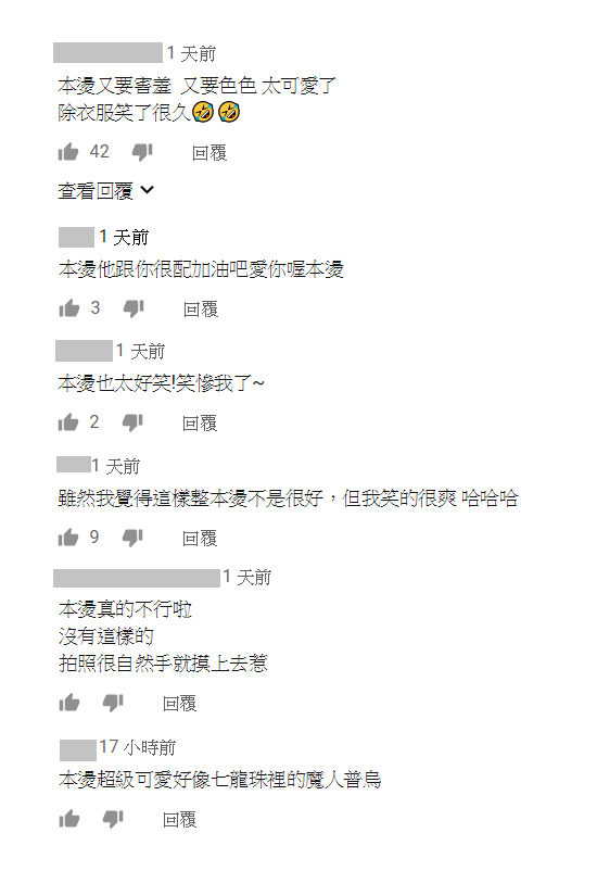 儘管此次的約會只是游否希的一個「測試」,但過程中「本燙」逗趣的反應,讓廣大網友紛紛回應「本燙又要害羞 又要色色 太可愛了」「雖然我覺得這樣整本燙不是很好,但我笑的很爽」「本燙也太好笑!笑慘我了~」。