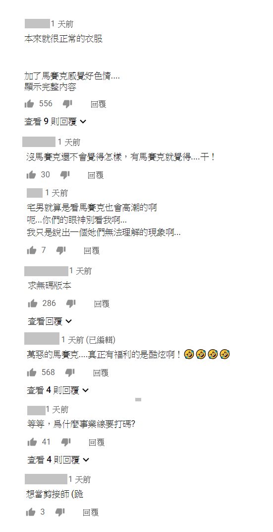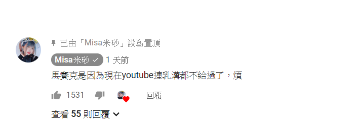 最後,「米砂」也無奈地出面留言表示「馬賽克是因為現在youtube連乳X都不給過了,煩」,只能說Youtube的審核制度斷送了許多網友們的福利啊!