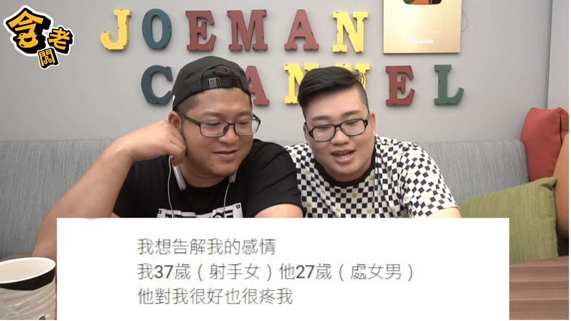 其中,有一名女網友提到自己正在和一名27歲的處女男談姊弟戀,兩人因產生了一些誤解,導致男方無法相信女生是真的愛他的,而面對這樣的問題,「Joeman」表示自己也是處女男,更坦言「蠻愛斤斤計較的」,之後也提到姊弟戀通常會遇到的問題即是「女方要準備要結婚了」,而草爺也趁勢問道「那你準備了嗎」,讓「Joeman」措手不及地表示「我還在準備,還在努力存錢當中,我準備一輩子只為一個人」,言語間透露了結婚的念頭。
