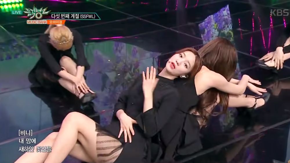 韓國女團Oh My Girl上月以《第五個季節》(다섯 번째 계절)回歸,該歌曲在Youtube點閱破1千9百萬,歌曲不只動人,舞蹈動作更是性感驚人,在音樂節目的回歸舞台上可以看到,團員們先行在地上做出性感撩人的表情,兩位團員肩靠肩,接著翻身做出轉身跪下的動作,讓人看了鼻血直流,不過這樣的舞蹈動作卻在戶外現場演出「很危險!」