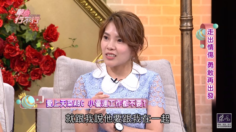 小優常常在社群平台分享大小事,不過單身多年的她,鮮少透露過去戀情的酸甜苦辣,近日她到節目《單身行不行》透露,之前在一位加州友人的牽線下,認識了這位ABC男友,兩人見面後相談甚歡,她從美國回台灣後,相隔兩地曖昧了一段時間,每天都會用手機軟體聊天,之後相約在日本見面,對方明確告訴她想在一起,就順理成章開始交往。