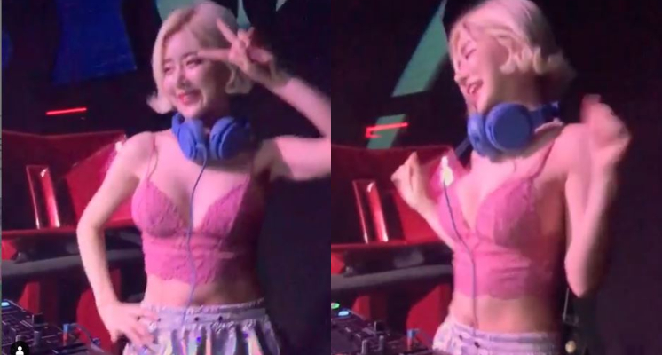 南韓女神DJ Soda因為擁有亮麗外型和音樂實力時常成為國內外各大音樂節的寵兒,活動現場更不避諱清涼穿著,成為現場觀眾看演出的意外福利,23日晚間,DJ Soda就公開演出美國饒舌歌手利爾納斯X(Lil Nas X)歌曲《Old Town Road》的片段,當天DJ Soda身穿粉色蕾絲背心,更隨著音樂興奮擺動,不過小尺寸的上衣幾乎包不住豐滿上圍,過程中DJ Soda的胸部呼之欲出。