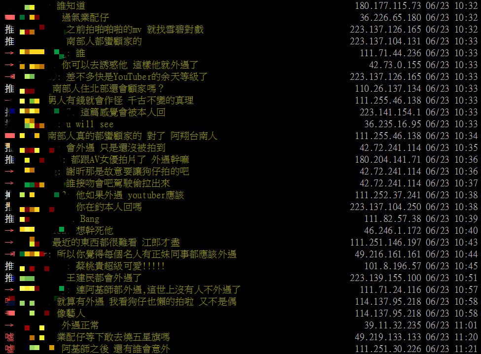 而文章上傳之後,網友也紛紛留言:「南部人都蠻顧家的」、「差不多快是YouTuber的余天等級了」、「男人有錢就會作怪 千古不變的」、「u will see」、「會外遇 只是還沒被拍到」、「都跟AV女優拍片了 外遇幹嘛」、「連阿基師都外遇,這世上沒有人不外遇了」,引起了兩方論戰。