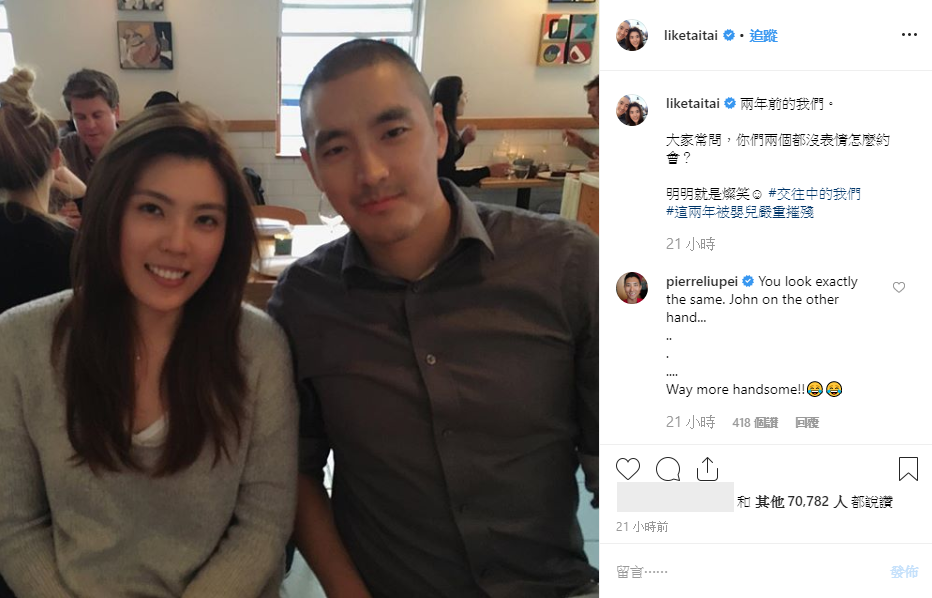 理科太太昨(23)日在IG中發文:「兩年前的我們。大家常問,你們兩個都沒表情怎麼約會?明明就是燦笑☺️」只見照片中還在交往階段的她,對著鏡頭甜蜜微笑,John也面露笑意,看起來十分恩愛。此外她也搞笑自嘲:「這兩年被嬰兒嚴重摧殘」,不改幽默風格。