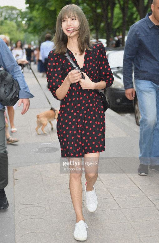 日前,Lisa現身韓國仁川機場準備飛往巴黎前,當天就已經身穿印有「Celine」字樣的黑色素T,並搭配寬管牛仔褲,展現出傲人的大長腿,抵達法國後也造訪Celine在巴黎的旗艦店,這時就換上甜美十足的黑底紅點短洋裝,腳下也不忘穿了一雙同品牌的球鞋,不管帥氣或是甜美造型似乎都難不倒他。