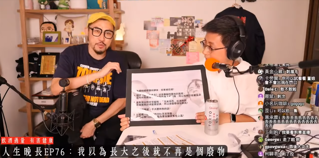 呱吉和熱狗在直播中互相分享人生經歷,一開始呱吉提到,他國中常打手X,他曾經以為自己長大後再也不需要打手X,但35歲之後他發現自己還是天天打手X,熱狗則回應呱吉,「我覺得這很正常,男生永遠都會打手X」,更大方坦承,「有時候跟女生做X只是為了代替打手X」。