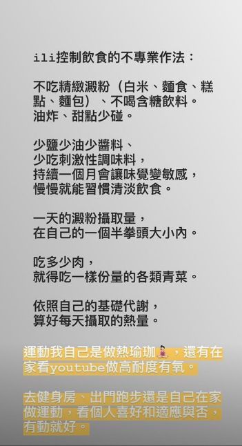 此外,雞排妹還表示:「吃多少肉,就得吃一樣份量的各類青菜。」運動方面,雞排妹會做熱瑜珈,在家會自己看著YouTube影片做有氧運動,「去健身房、出門跑步還是自己在家做運動,看個人喜好和適應是否,有動就好。」雞排妹驚人的毅力,讓不少人驚嘆不已!