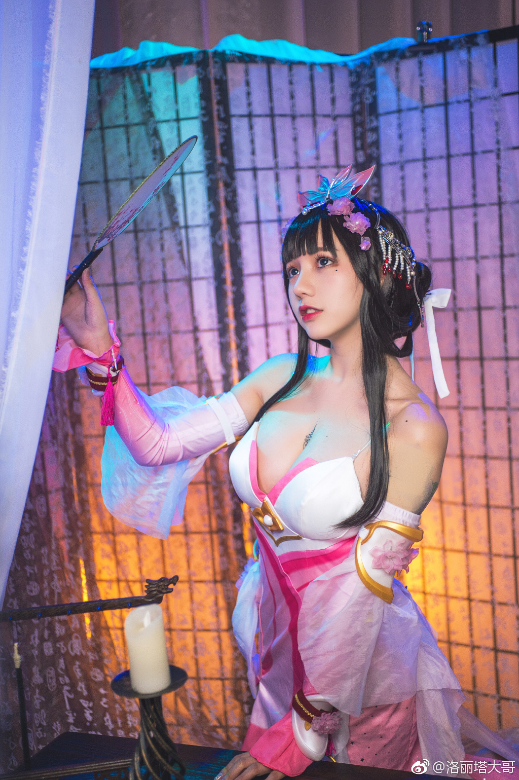 近日洛麗塔大哥睽違許久再度發出cosplay的照片,這次洛麗塔cos的是《逆水寒》中的九靈,她身穿一件藍色的角色服裝,頭上也掛上了淺色的絲質頭巾,而她也露出了她超級傲人的上圍,深深的一條溝非常驚人,而她也的服裝也開了高衩,露出一雙纖細白嫩的大長腿,讓粉絲們大飽眼福。過去洛麗塔也曾cos過許多角色,同時她也非常喜歡漢服,是一個風格十分多元的網紅。