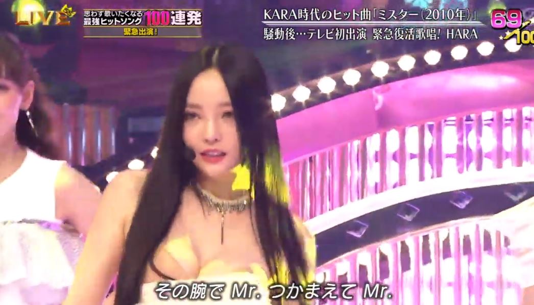 不過演出開始前,主持人也特別關心具荷拉近況並表示「之前的是日本的大家都很擔心,現在還好嗎?」,具荷拉也以日文正面回應「現在已經沒事了,之後會在日本以歌手身分活動,請大家繼續為我加油」。