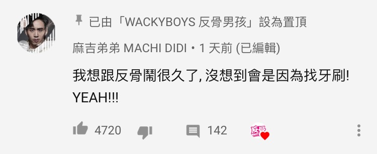 影片播出後,麻吉弟弟在下面親回:「我想跟反骨鬧很久了,沒想到會是因為找牙刷!YEAH!!!」願意配合反骨調侃自己,讓許多網友感到佩服,也留言表示支持:「不管說什麼我還是相信麻吉弟弟是有實力的」。