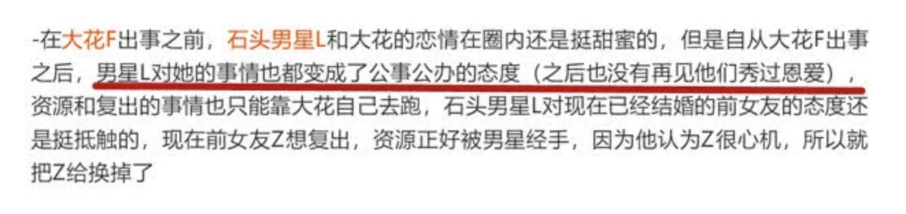 卓偉昨日在小帳號中曝光了范冰冰與李晨分手的內幕原因,說道:「在大花F出事之前,石頭男星L和大花的戀情在圈內還是挺甜蜜的,但自從大花F出事之後,男星L對她的態度也都變成公事公辦的態度(之後也沒有再見他們秀過恩愛),資源和復出的事情也只能靠大花自己去跑。」,文中大花F則是指范冰冰、石頭男星L則是李晨,此篇爆料就是在暗指范冰冰逃漏稅風波後李晨對她的態度有非常大的轉變,和之前出事之前恩愛的模樣相差許多。