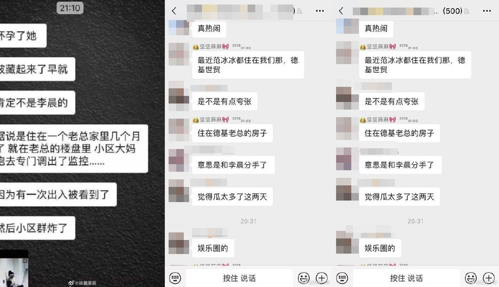 根據網友曬出的對話截圖中提到:「最近范冰冰都住我們那,德基世貿」,更指稱德基老總就住在那邊,而德基老總指的就是吳鐵軍,甚至有人更表示吳鐵軍花了9億人民幣(約40幾億台幣)才幫范冰冰擺平一些事,而李晨一直以來都是睜一隻眼閉一隻眼,只能裝作自己不知道。此消息一出後在微博上引發許多討論,包含《新浪娛樂》、《搜狐娛樂》等許多陸媒都大篇幅報導此消息。