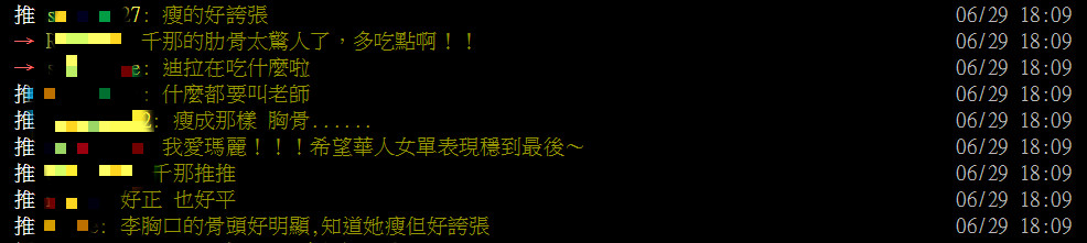不過這次便有許多網友發現千那因為太瘦,軒前可見清晰排骨,紛紛嚇傻留言:「千那的肋骨太驚人了,多吃點啊!!」、「瘦成那樣 胸骨」、「太瘦了穿這樣不好看」、「李千那好瘦」、「李千那也瘦到胸口見骨」、「胸前都骨頭」、「李胸前的骨頭真的超級明顯 好瘦好瘦」,引起熱烈討論。